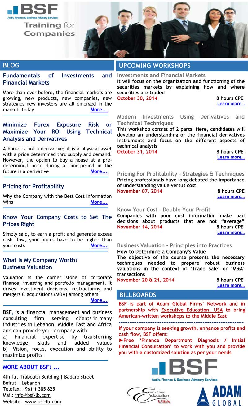 #BSF (Best Solution Finance): Newsletter – Blog and New Financial Workshops – Fall 2014 #Eyemails